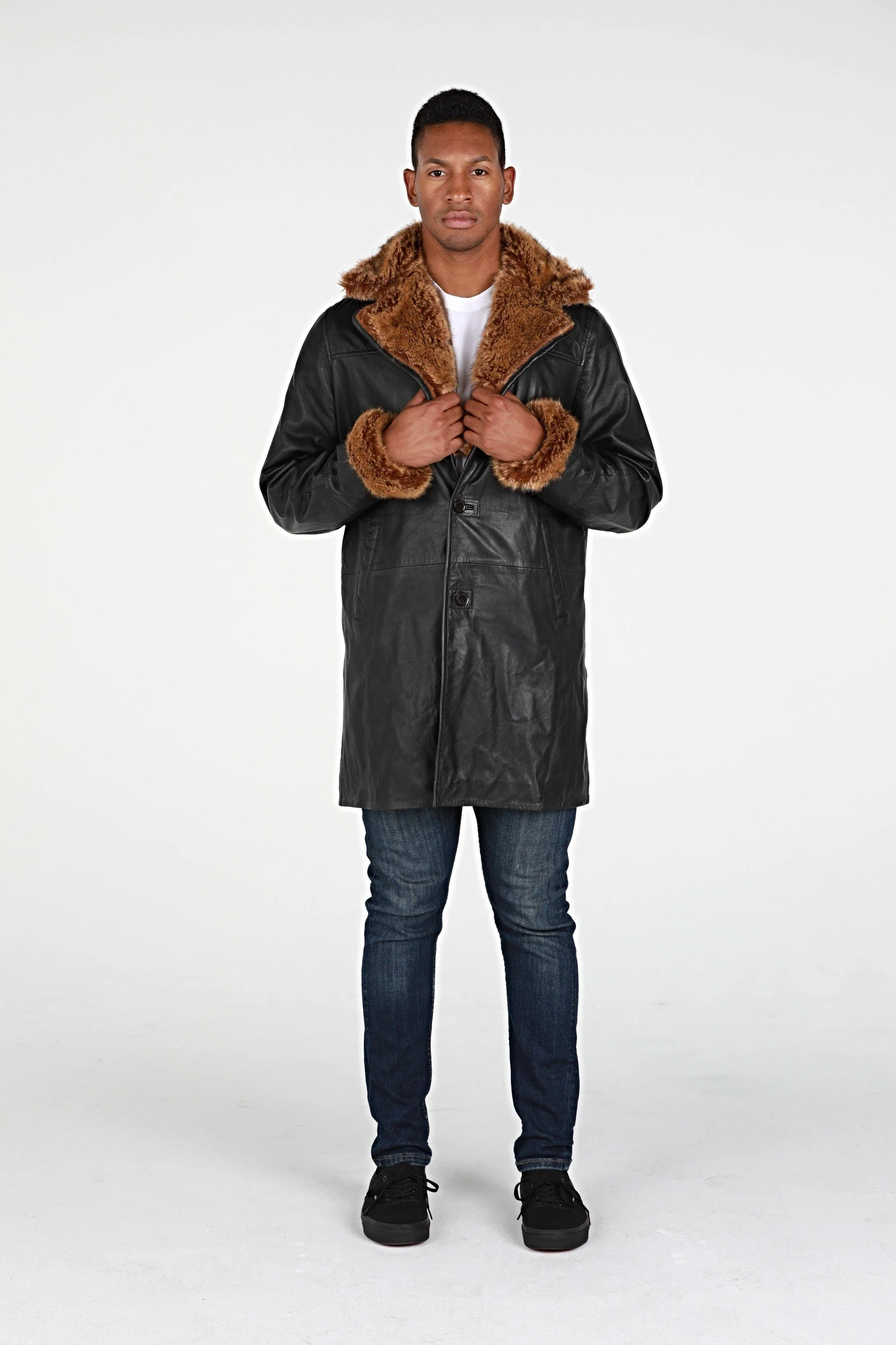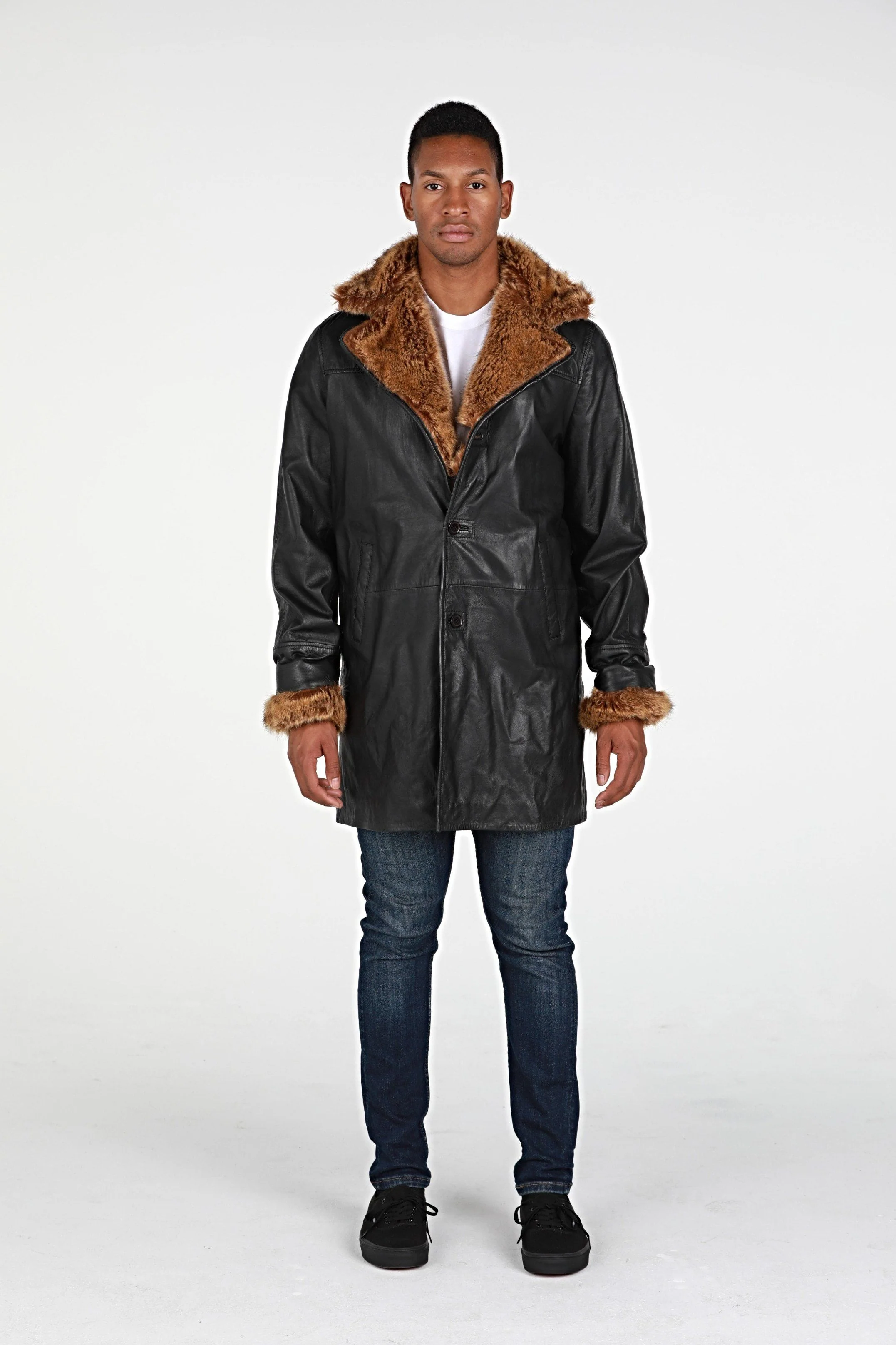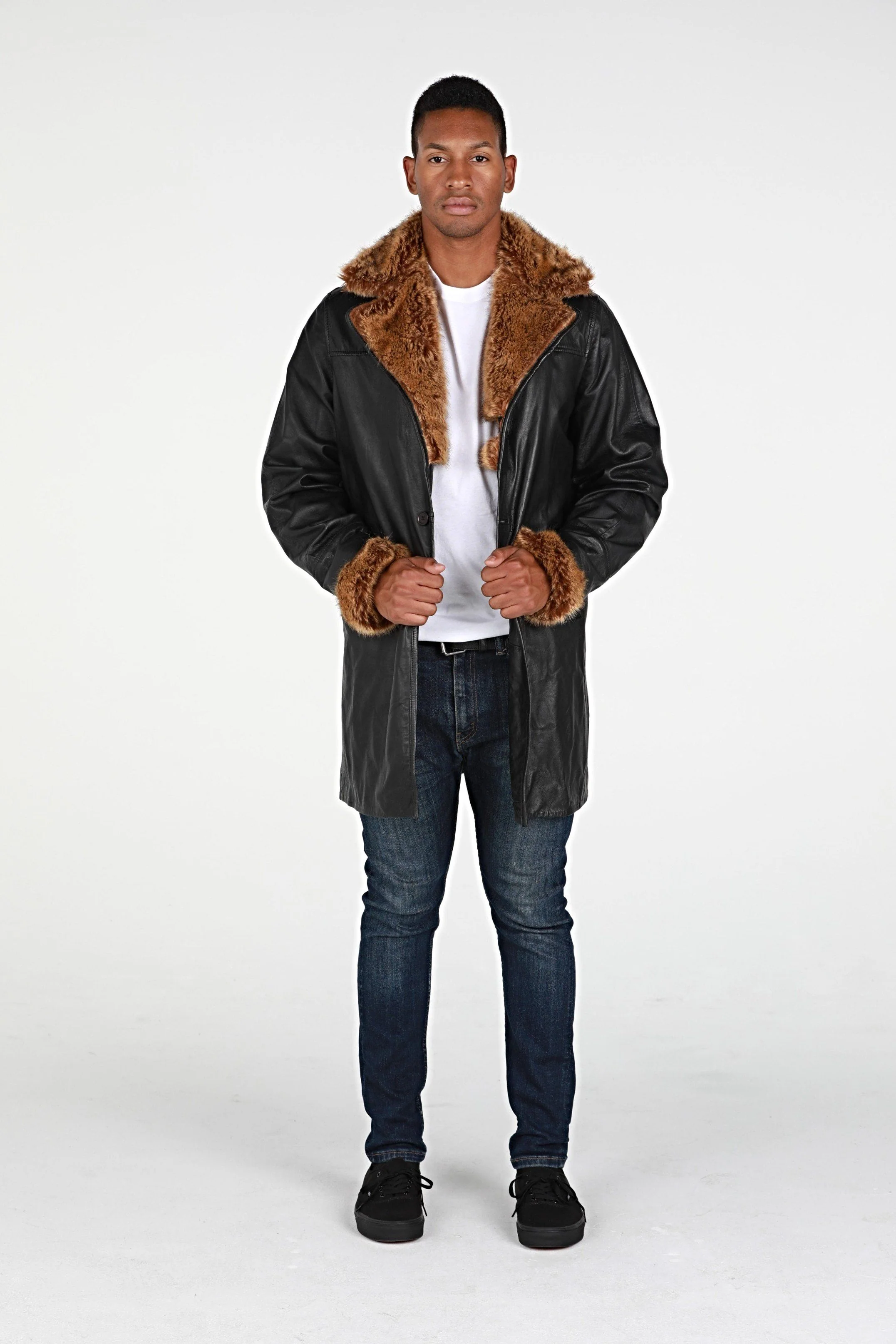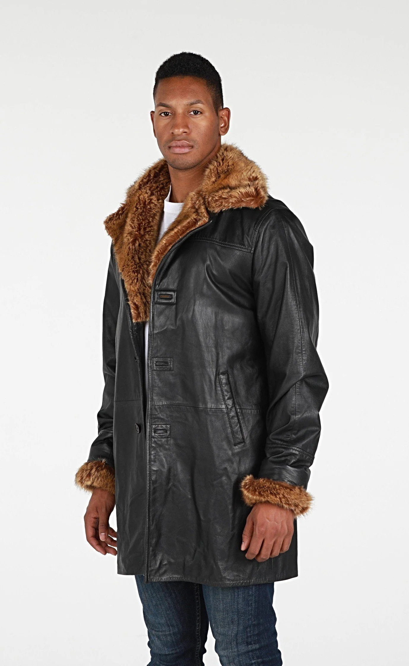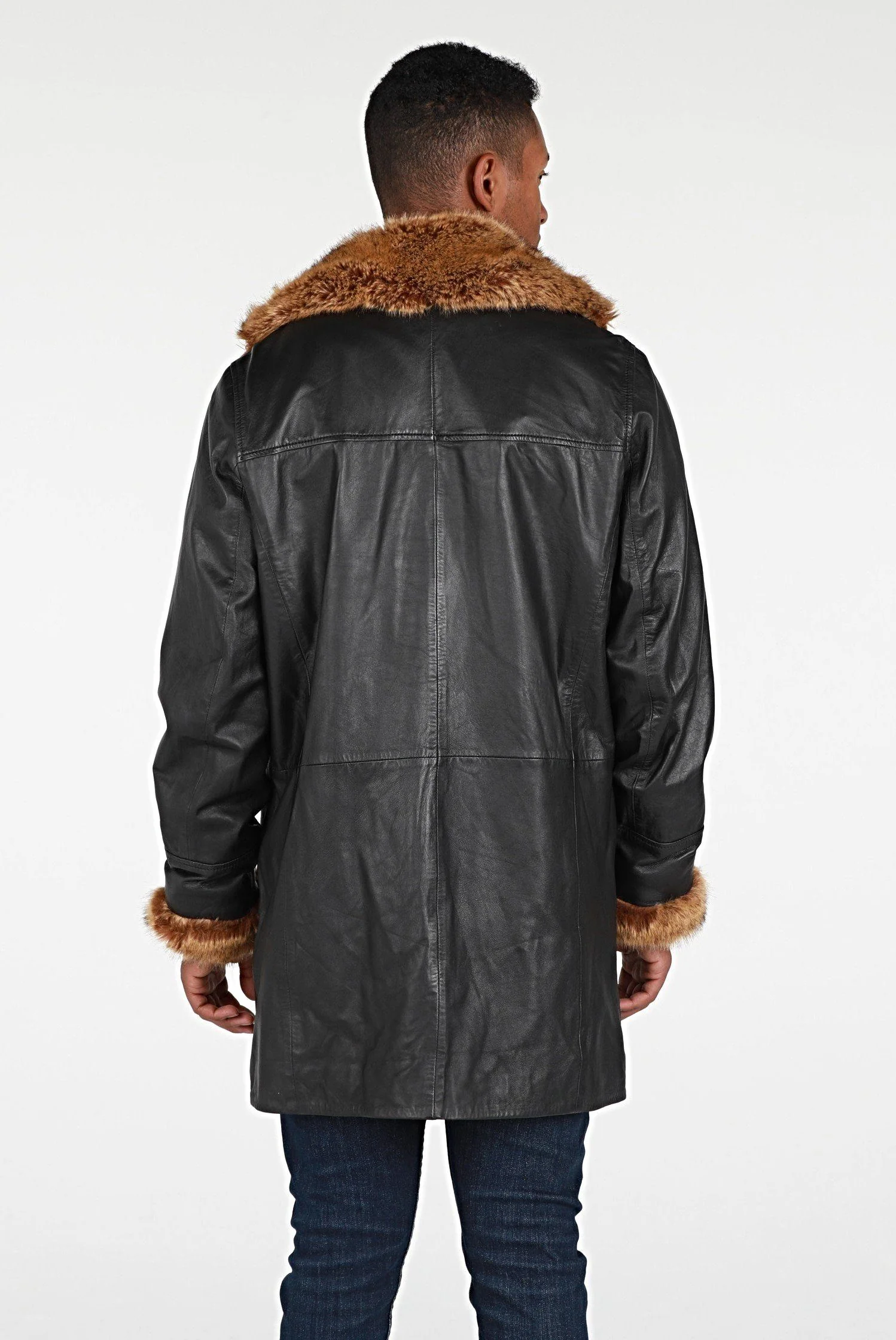 Ulman Mens Winter Leather Coat w/Faux Fur - Clearance