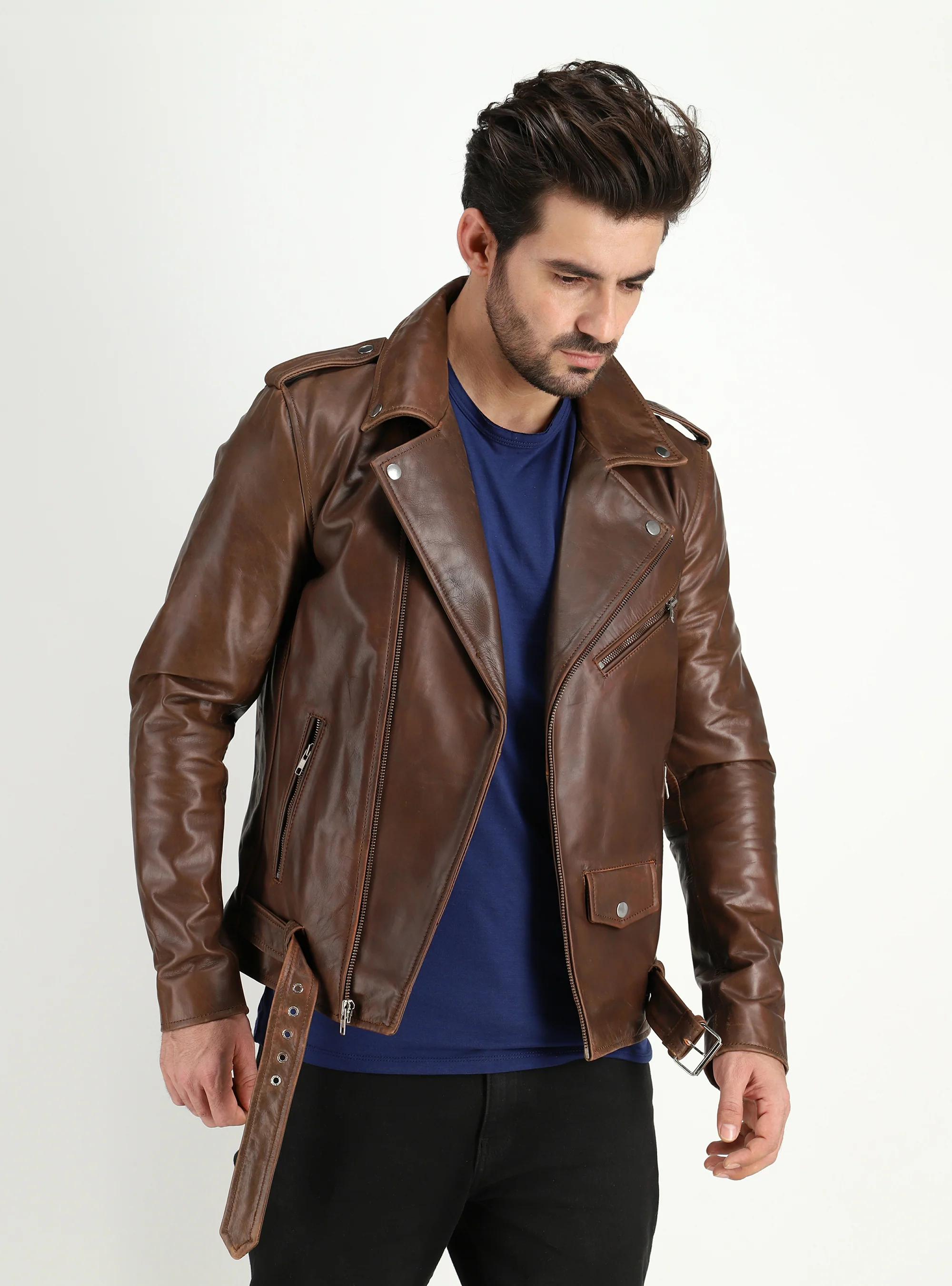 - Classic and Most Popular Moto Style Leather Jacket