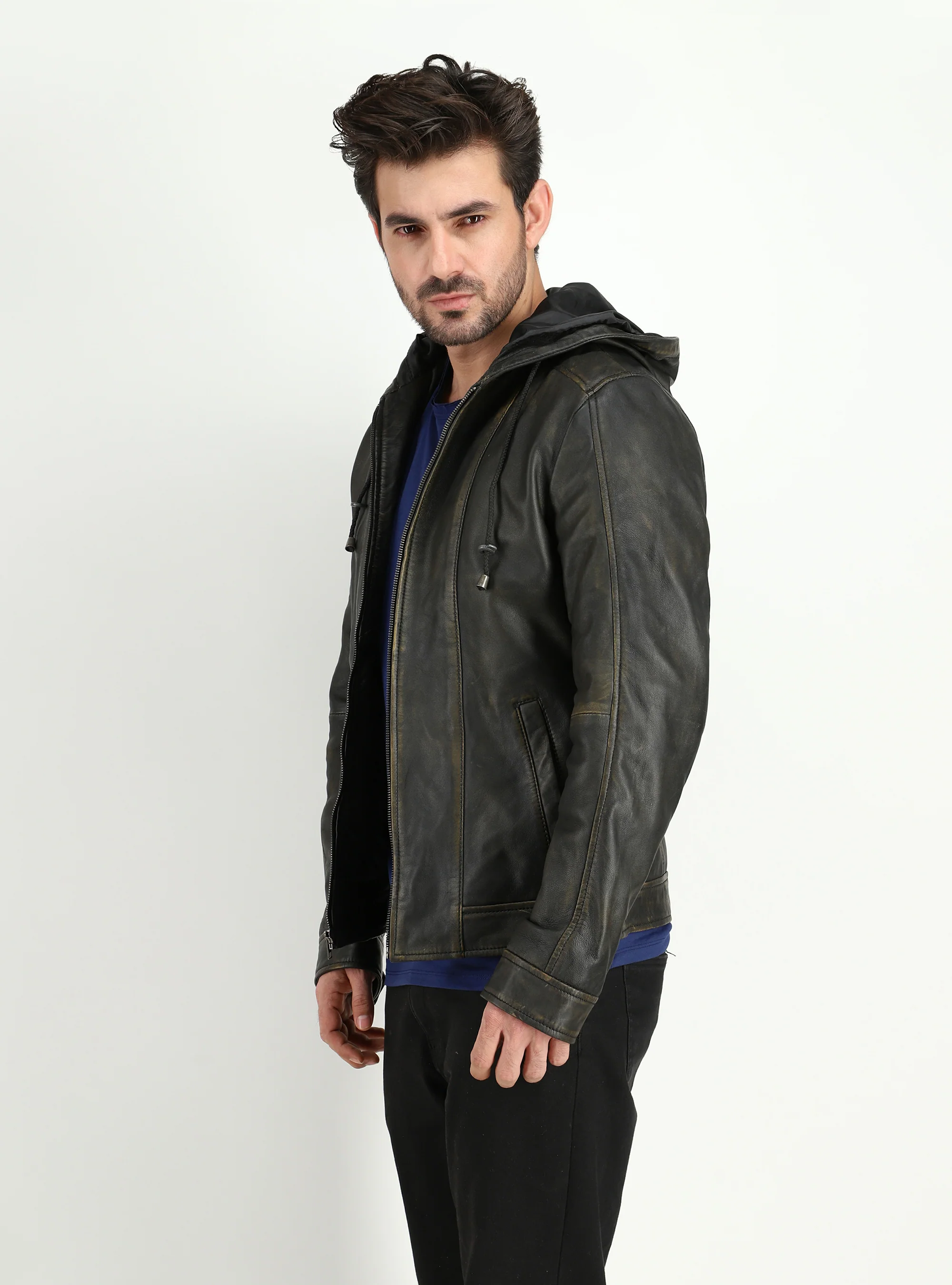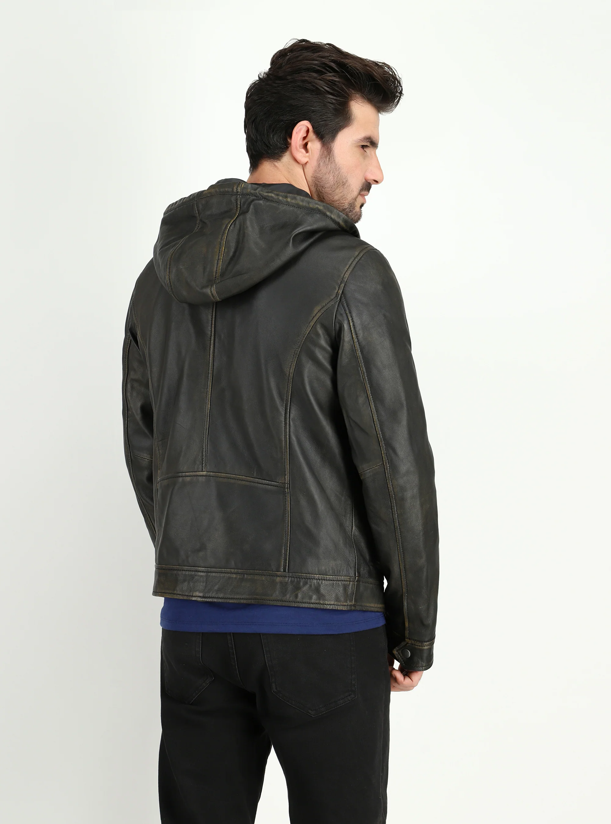 Men's soft, supple lambskin leather bomber jacket. Has a contemporary look and feels smooth and relaxed. Sweatshirt Style Leather Hoody - Zipper Removable Fully Lined 100% Real Leather. Satin Lining Stylish Wear.