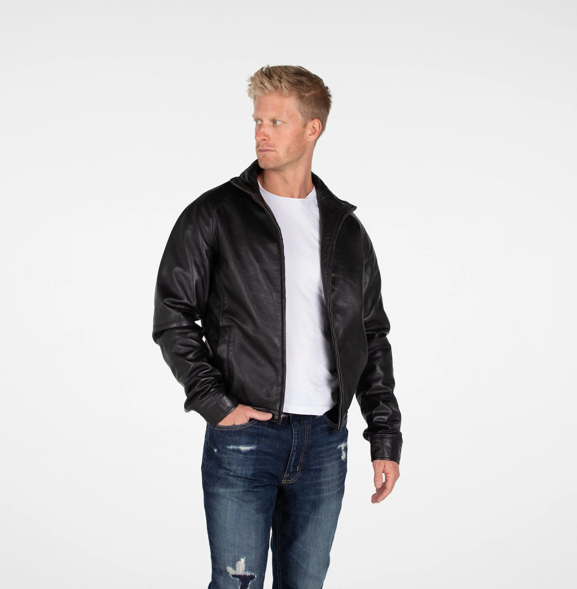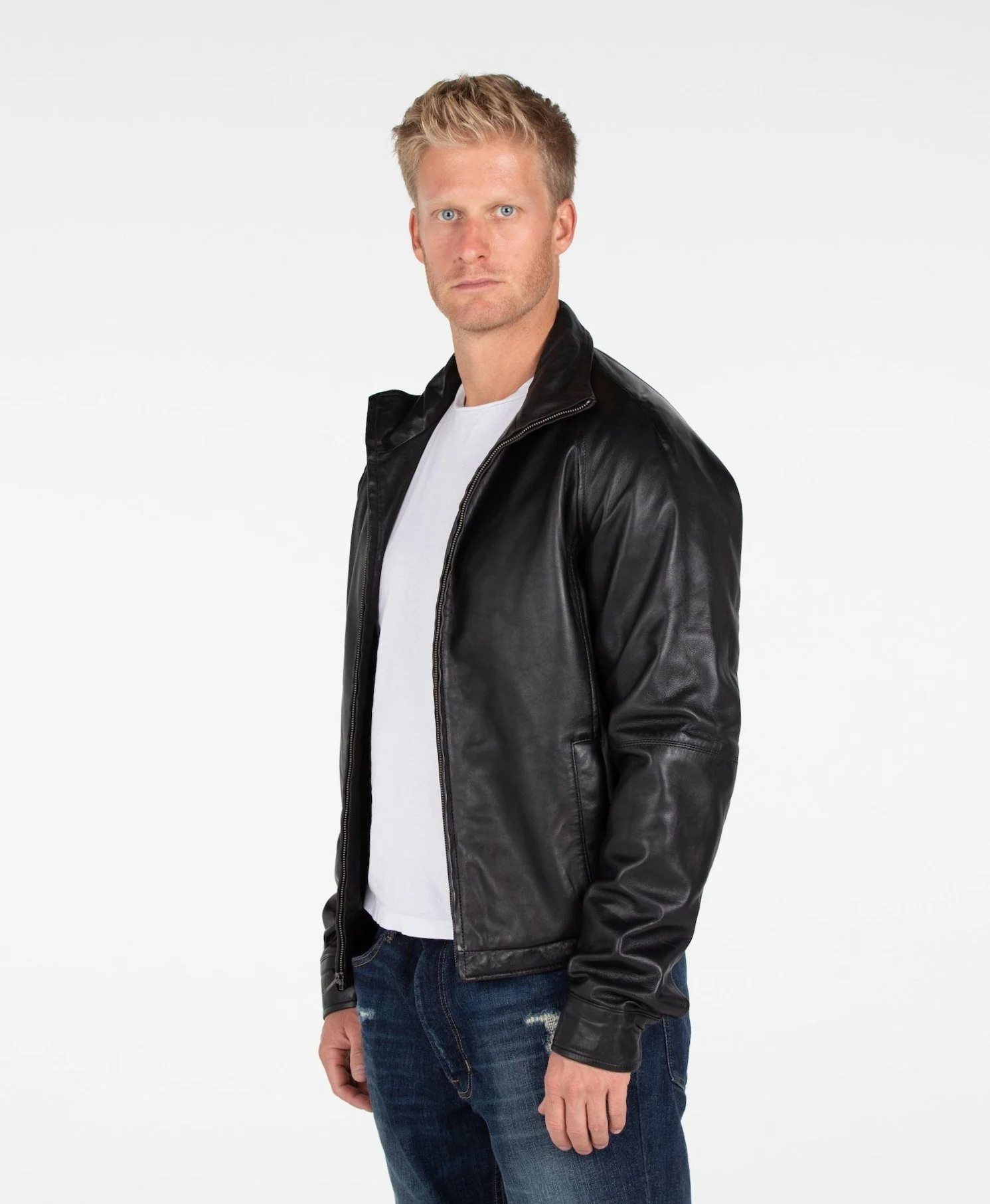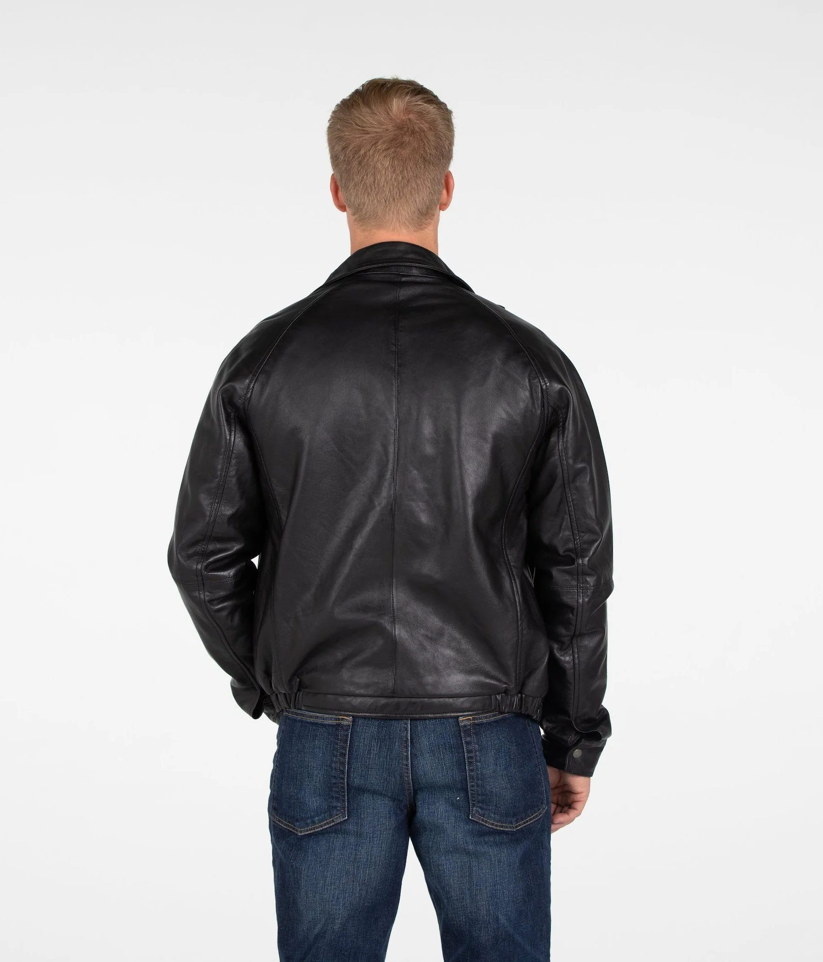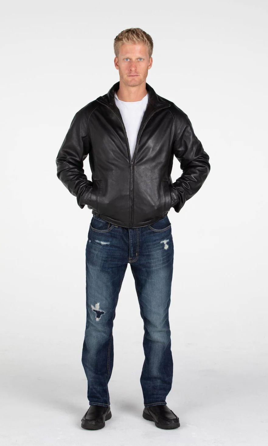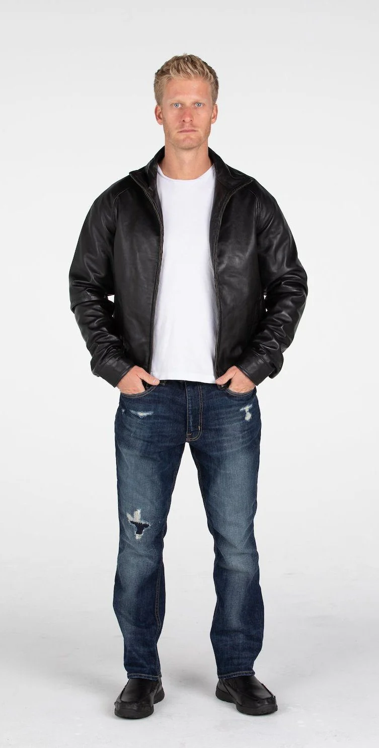 Mens Classic Leather Jacket with Straight Zipper. Made with 100% Soft and Supple Lambskin Leather. Has side elastic leathered ribs for waist adjusted fitting. Very nice, casual and formal wear. Fully Lined with Satin Lining. This is one of the most popular classic styles. Can be worn formally or casually.