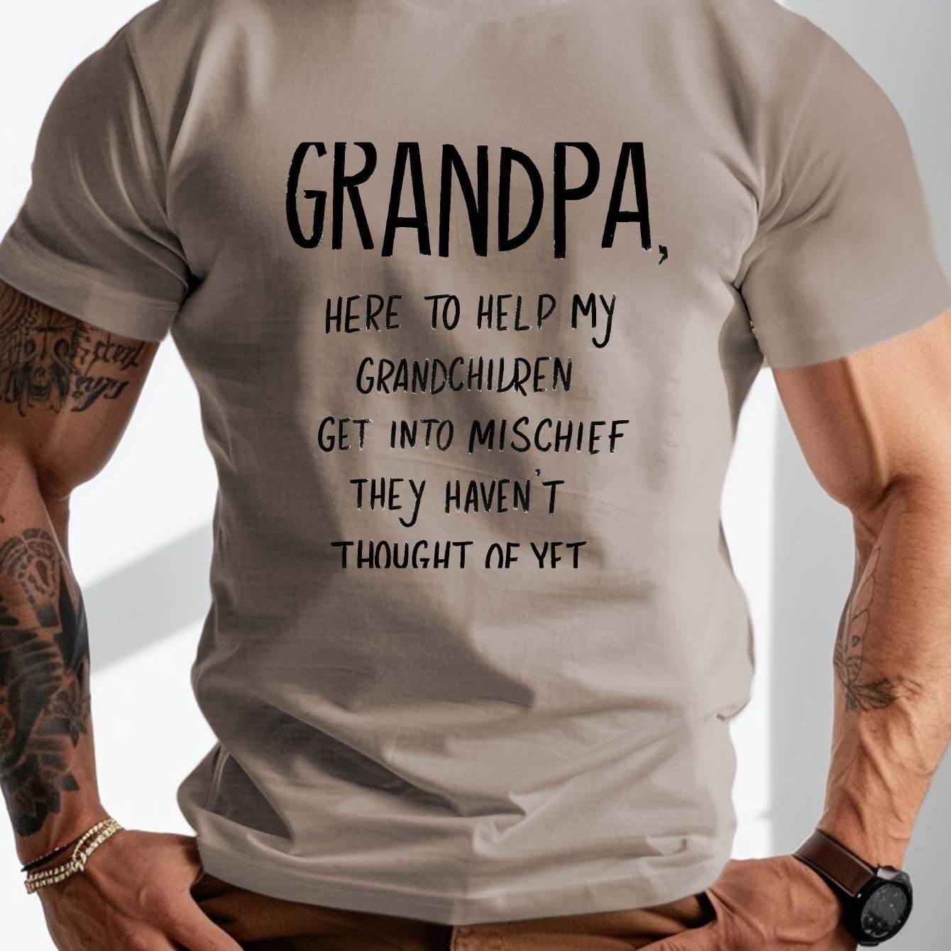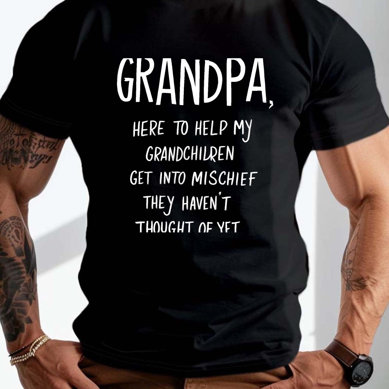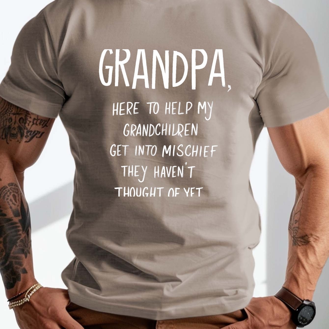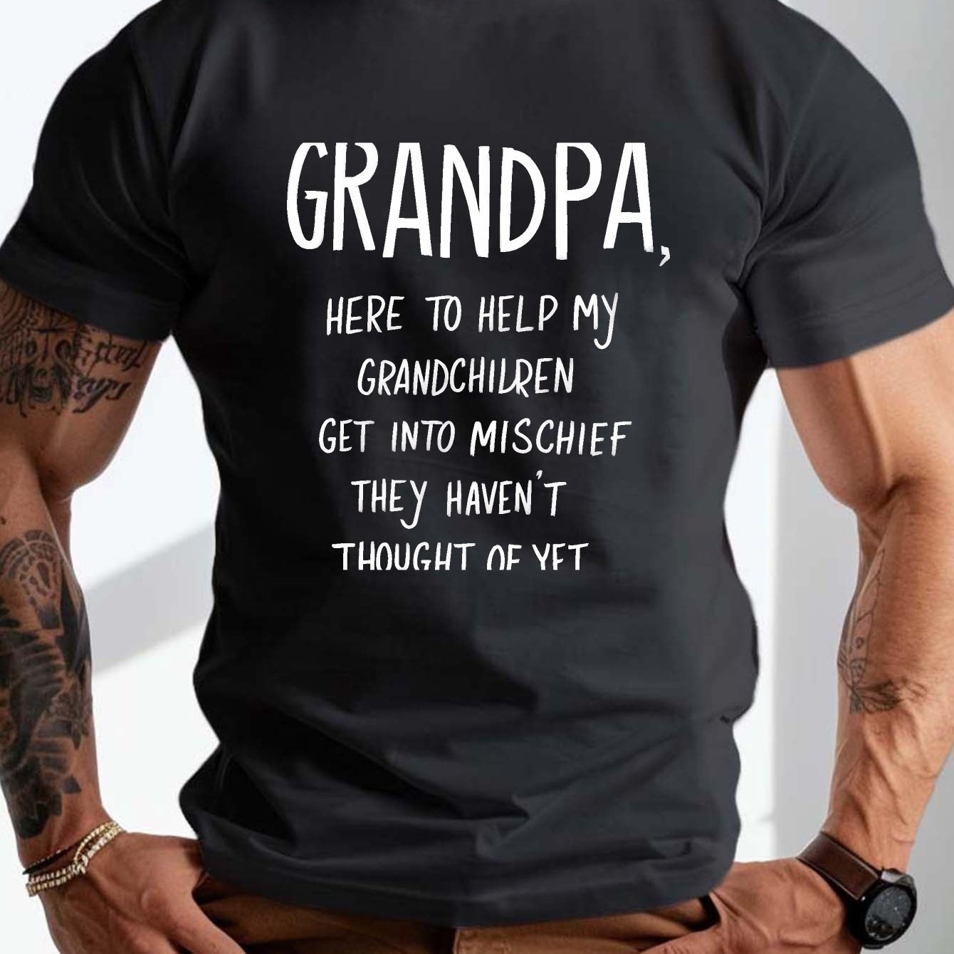 • Plus Size Big & Tall Men's Graphic Print Short Sleeve Summer T-Shirt, Humorous Grandpa Mischief Quote Trend Casual Tees for Daily Life
