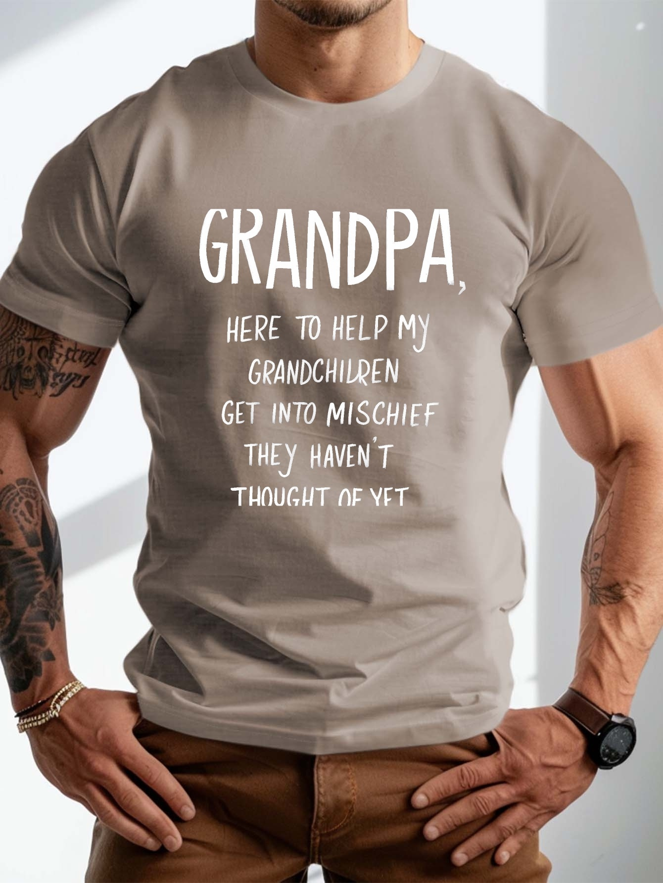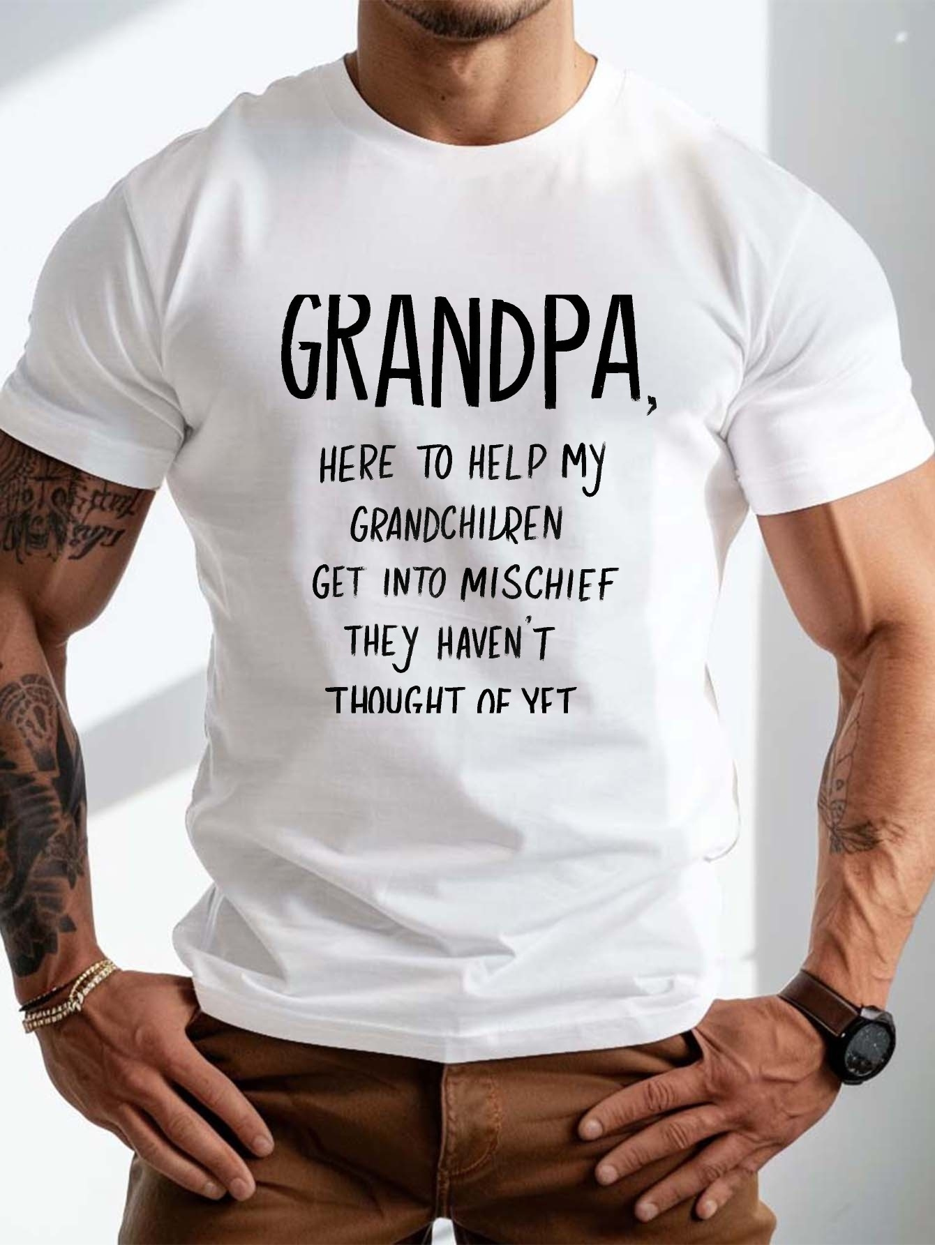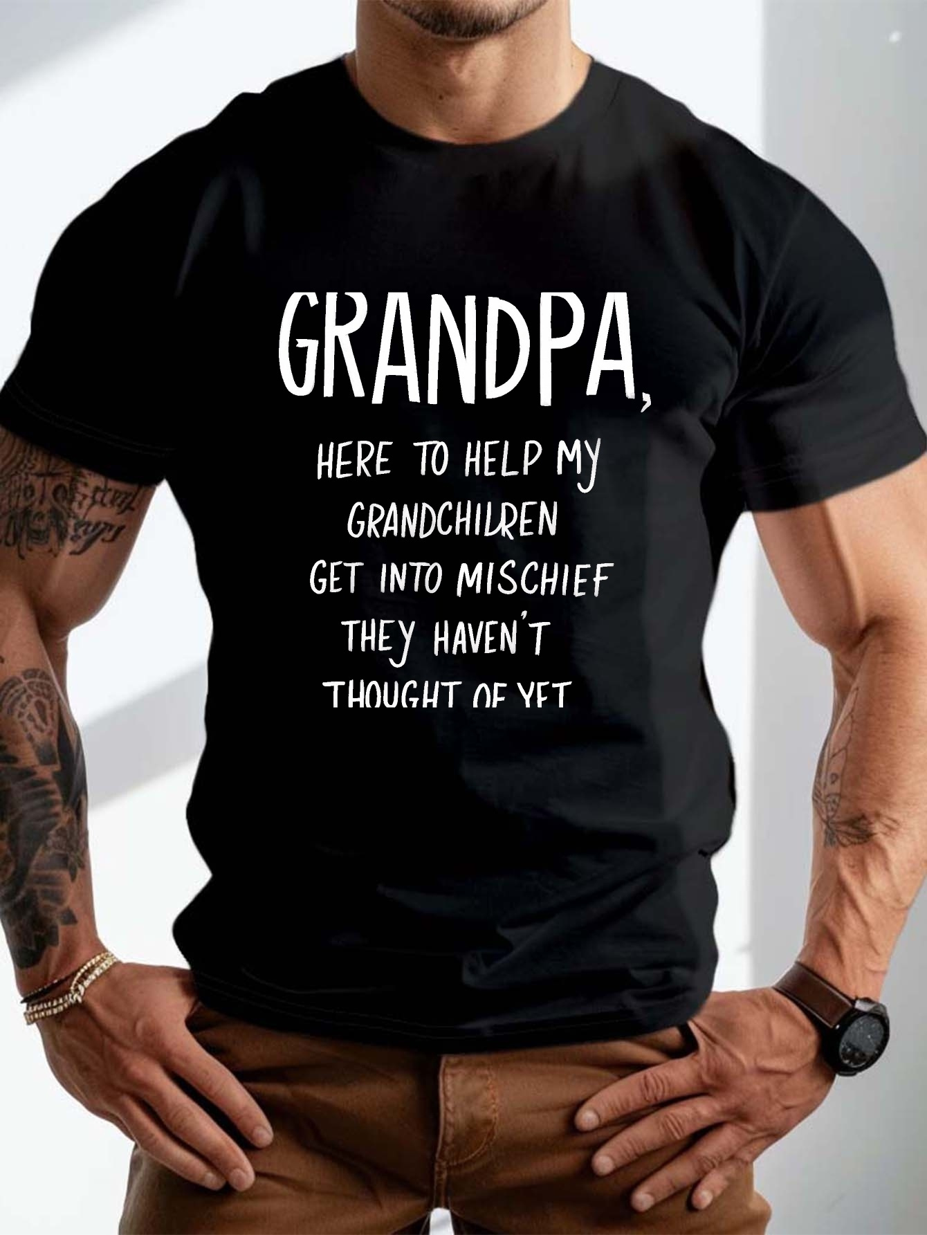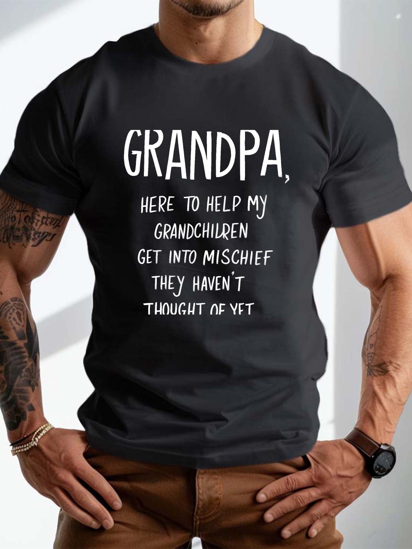 • Plus Size Big & Tall Men's Graphic Print Short Sleeve Summer T-Shirt, Humorous Grandpa Mischief Quote Trend Casual Tees for Daily Life